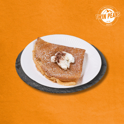 Az óriás lekváros palacsinta a klasszikus desszert bőséges, nagystílű változata. A frissen sütött, hatalmas palacsintát gazdagon megtöltjük gyümölcslekvárral, amely minden falatnál édesen és gyümölcsösen omlik szét. Egyszerűségében rejlik az ereje: nosztalgikus, otthonos ízvilág, extra méretben, amely tökéletes választás, ha valami jól ismert, mégis laktató édességre vágysz.